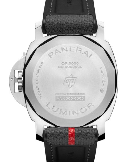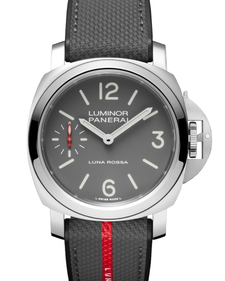 Limited to just 150 pieces, the PAM01654 is equipped with a bi-material black rubber and grey textile strap featuring a Luna Rossa red stripe, plus a spare rubber strap. A titanium tang buckle completes the sporty ensemble .