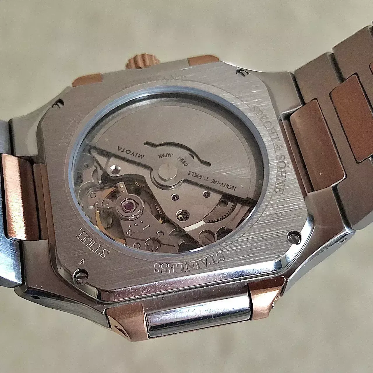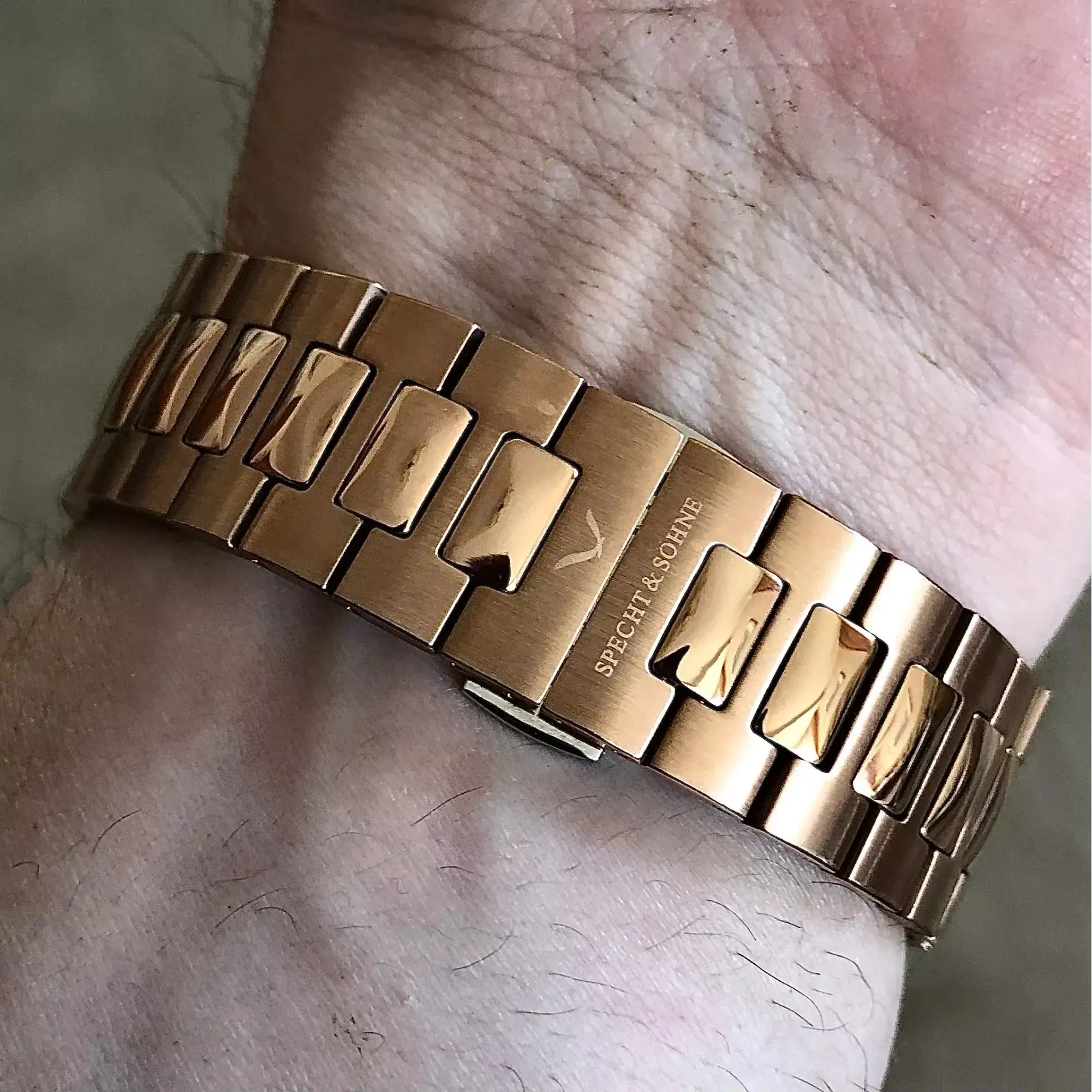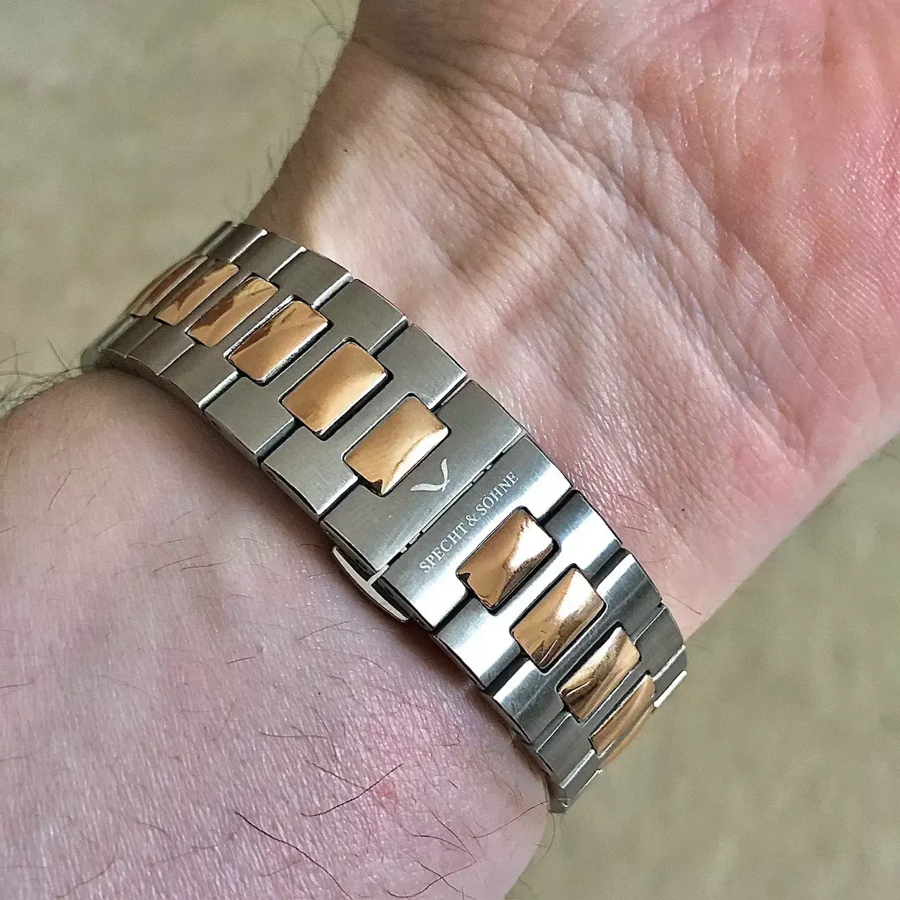 Great watch and very nice craftsmanship. The case is slightly taller due to the automatic movement compared to the quartz version, but still within an acceptable range for a medium wrist. The band looks excellent visually and finally has the matching large links for the case! Also, a brand engraving was placed on the clasp - great! One problematic issue is the alignment of the bands: without a professional pindriver, you won't be able to move the stuck pins. The tool provided is useless. Nevertheless, I would still give the watch a full score - the quality and appearance, as well as the workmanship, are excellent for the price!