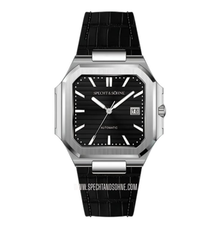 The Specht & Sohne Cubic-L Automatic is a sophisticated timepiece that pays homage to the iconic design of the Patek Philippe Cubitus, blending classic elegance with modern craftsmanship. Featuring a sleek, rectangular case and a minimalist dial, the Cubic exudes timeless sophistication. Its refined aesthetics are complemented by precise automatic movement, ensuring reliable timekeeping.