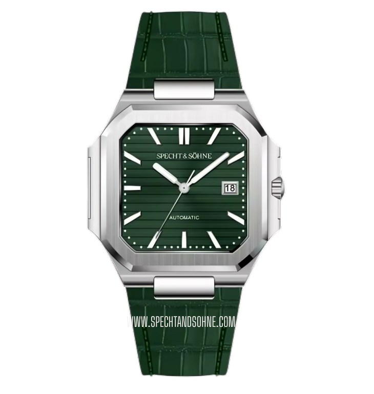 The Specht & Sohne Cubic-L Automatic is a sophisticated timepiece that pays homage to the iconic design of the Patek Philippe Cubitus, blending classic elegance with modern craftsmanship. Featuring a sleek, rectangular case and a minimalist dial, the Cubic exudes timeless sophistication. Its refined aesthetics are complemented by precise automatic movement, ensuring reliable timekeeping.