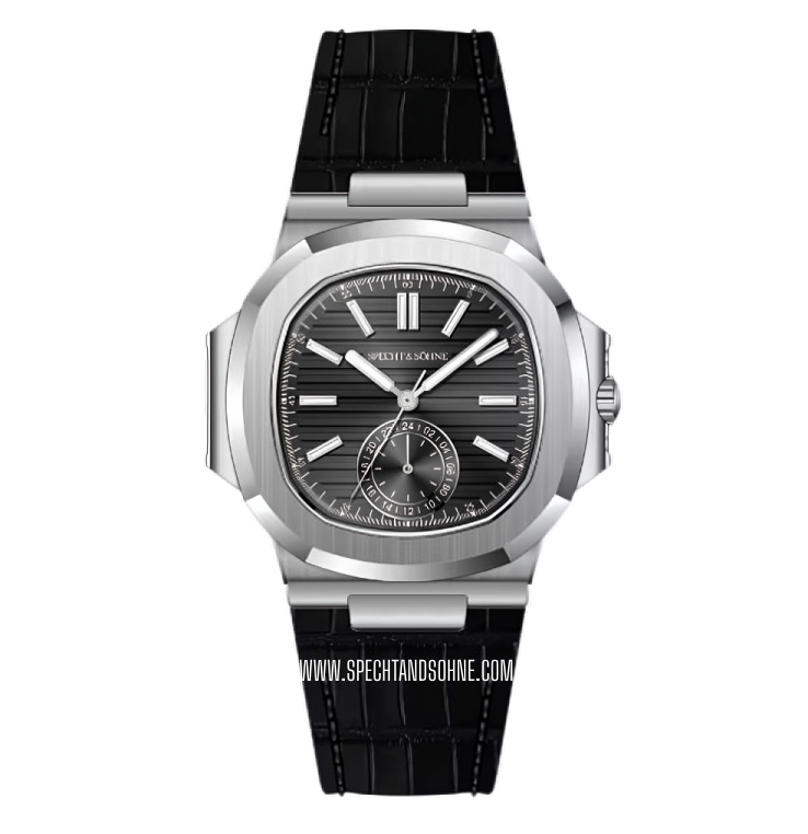With the rounded octagonal shape of its bezel, the ingenious porthole construction of its case, and its horizontally embossed dial, the Nautilus has epitomized the elegant sports watch since 1976. Specht and Sohnes homage to this much admired watch is perfect  for those who want the incomparable class of the iconic PP timepiece at an affordable price.