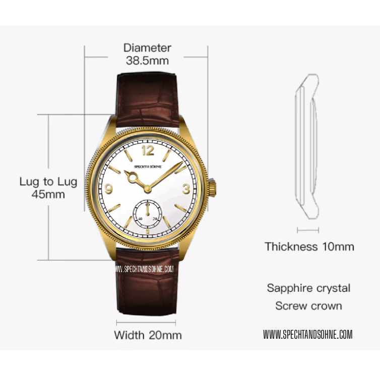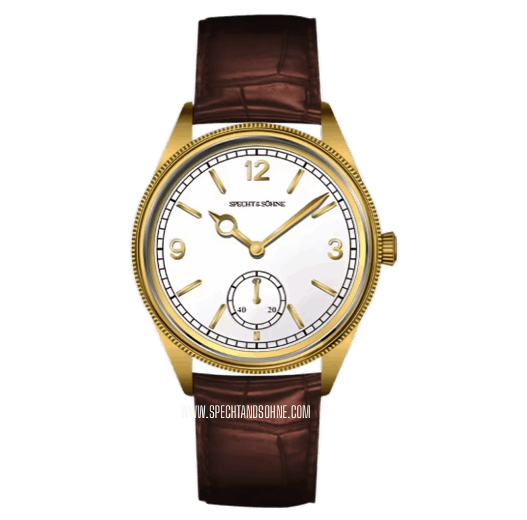 The Specht & Söhne Meridian embodies timeless elegance with a modern mechanical heart. Inspired by the refined proportions and classical aesthetics of early 20th-century dress watches, the Meridian pays subtle homage to the design principles made iconic by the Rolex 1908—clean lines, balanced symmetry, and pure watchmaking simplicity—while standing confidently as a creation of its own.