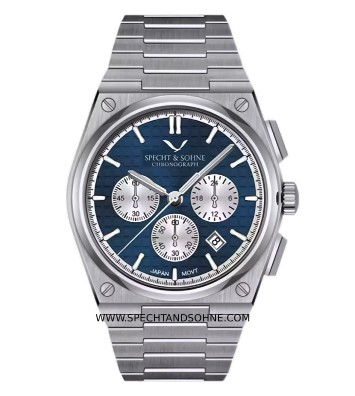 Stunning Textured Dial: Underneath the crystal lies a rich, textured grid-pattern dial. This intricate detail adds depth and plays with the light, serving as the perfect backdrop for the contrasting silver sub-dials and luminous applied indices.